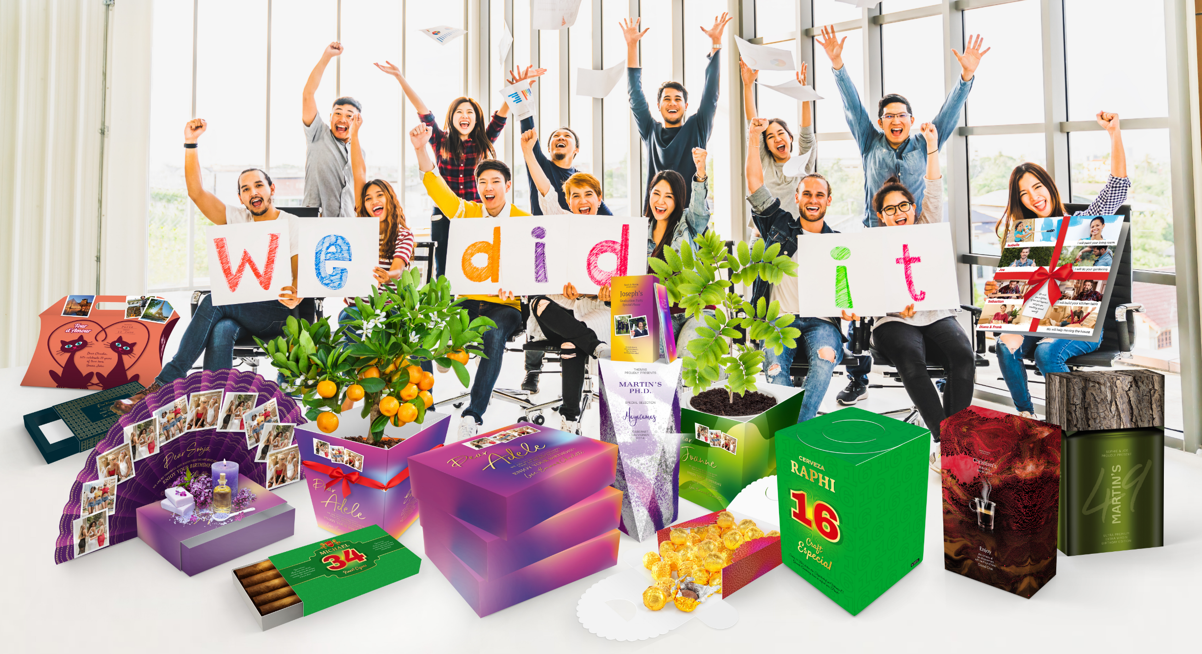 The whole product range has been specifically developed to suit allmost any reason to give a present: Birthday, Christmas, Valentine’s Day, Mother’s Day, Graduation, for lending a helping hand, for being a friend or a valued customer, for employees’ hard work and dedication, for achieving a business goal … Retail clients can choose between 11 pre-designed templates and add private messages and photos. Corpoarate clients can customize 7 pre-designed templates, add business messages and logos and can easily create multiple gift packages tailored for each recipient by taking data from a database.