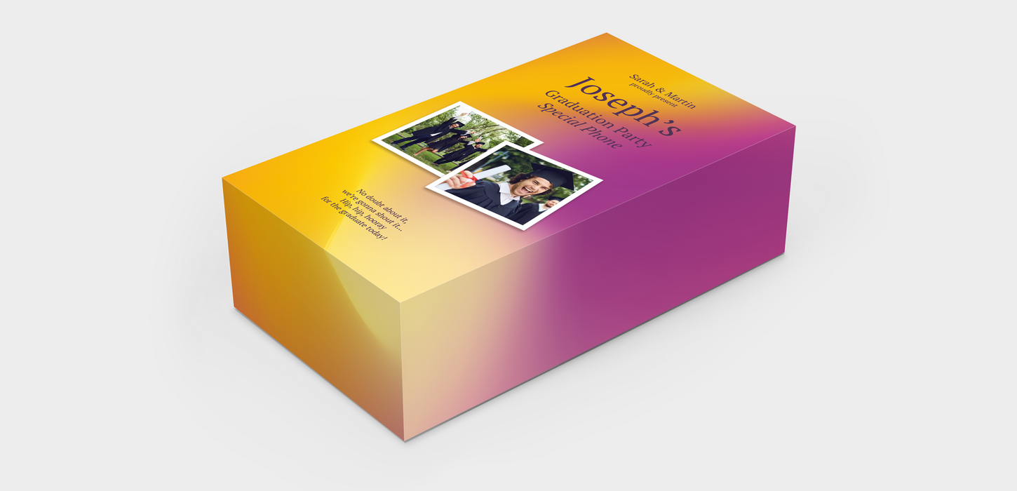 Pair your phone gift with your own personal wrapper. Just select size and background image. Personalize name and occasion. Add some photos and kind words. And get a custom printed wrapper that fits perfectly on the original manufacturer’s phone pack.